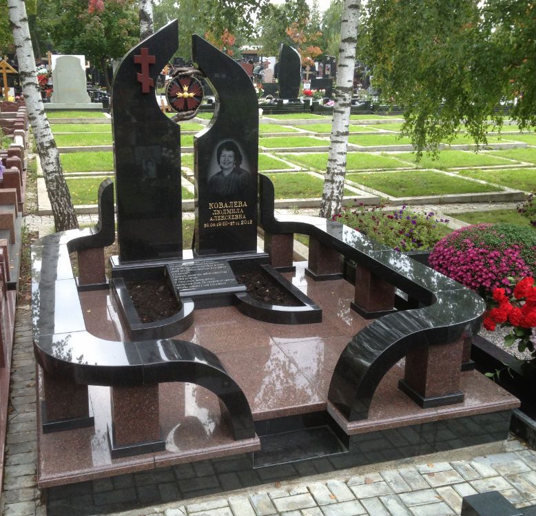 Кожен елемент виконується відповідно до ваших уподобань, тобто форму пам'ятника, розмір і наявність квітника, а також оформлення лави та іншого вибираєте Ви або із запропонованих варіантів, або за власним ескізом. Комплектація меморіального комплексу так само може змінюватись, і, наприклад, не включати в себе лавочки або вази.